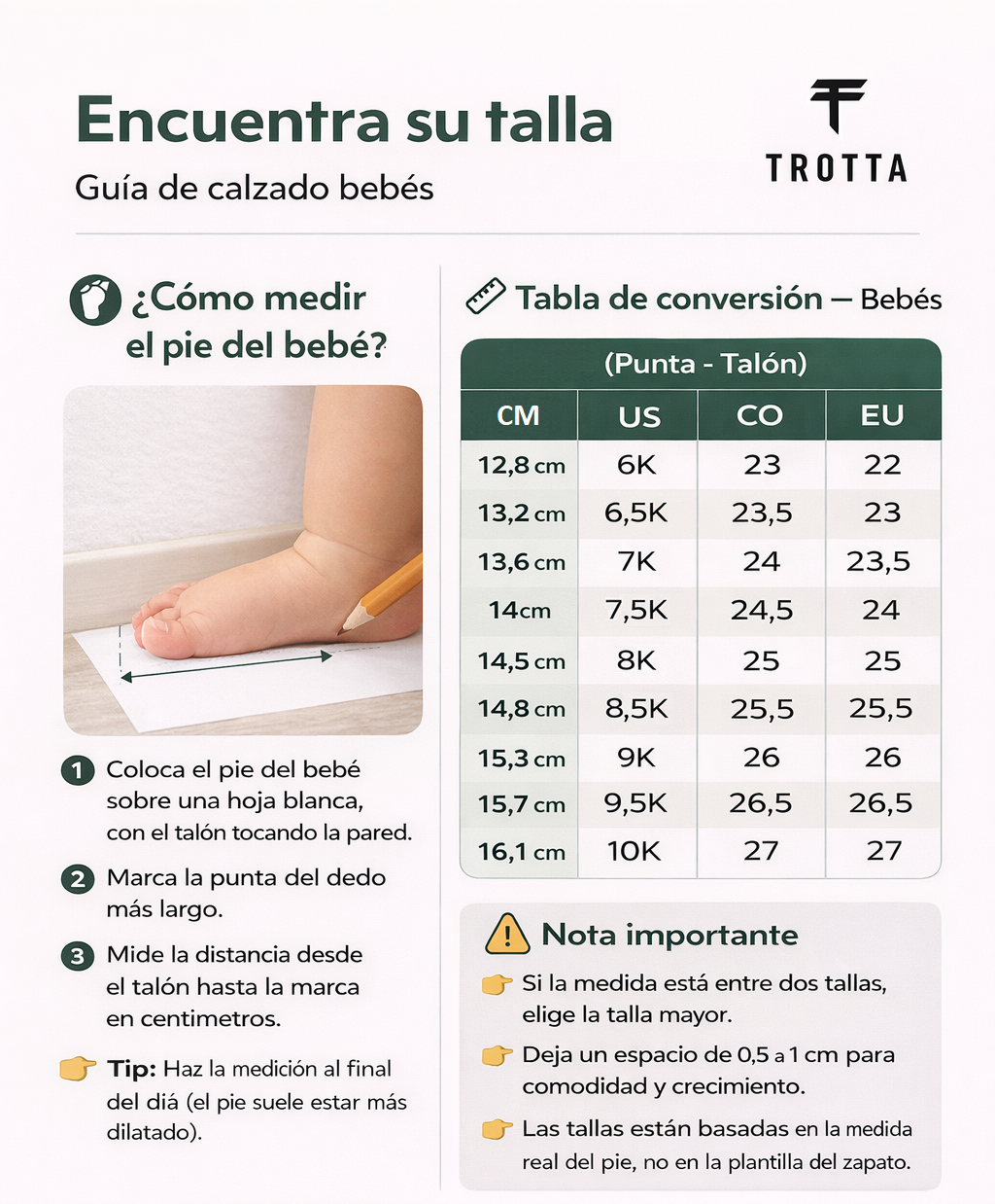 Sigue estos sencillos pasos para obtener el tamaño correcto. Para un mejor ajuste, mide tus pies al final del día.